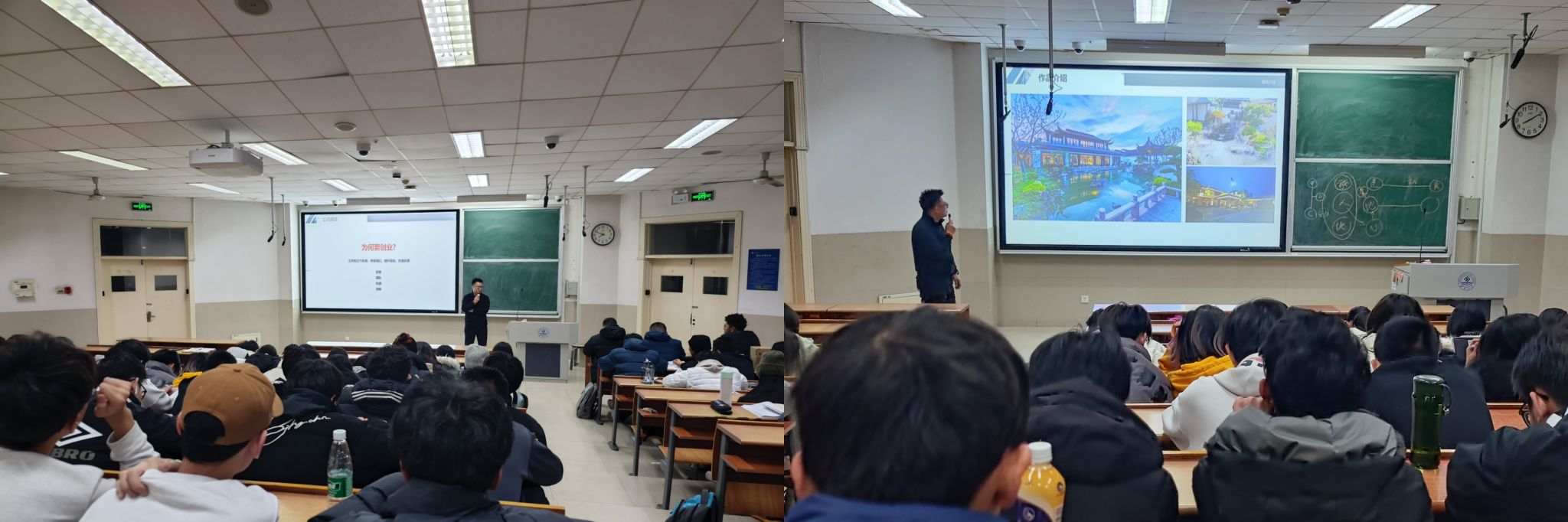 杜建东从工作履历出发,分享了他在建筑行业的成长经历,指出自身角色、客户需求和时代观念的转变都会在一定程度上影响着团队的设计理念,对项目不断推陈出新是自己和团队在同辈中脱颖而出的关键因素。在创业过程中,他认为把握行业风向标,巧妙地找准商业模式,坚持用专业做管理,能够起到事半功倍的效果。在谈到土木建筑行业未来发展趋势时,杜建东依然保持乐观心态,认为挑战与机遇并存,绿色建造、装配式建筑等新模式都会为建筑行业注入新的生机与活力。他鼓励同学们扎实学好专业知识,密切关注行业动态,加强团队合作创新,不断提升自己的专业素养和技能水平,为今后的创新创业打下坚实基础。杜建东的分享深入浅出、内容丰富,获得同学们一致好评。
