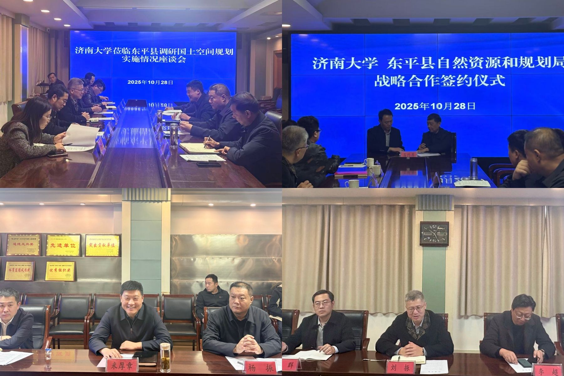 我院党委书记李超全面介绍了学院的整体发展情况、学科建设、师资力量等方面内容;院长谢群介绍了学院服务地方的具体举措与成果,展现了学院在助力地方城乡建设领域的专业优势。座谈会上,东平县自然资源和规划局党组副书记、副局长李冰详细介绍了东平县在国土空间布局、规划实施等方面的进展与规划。