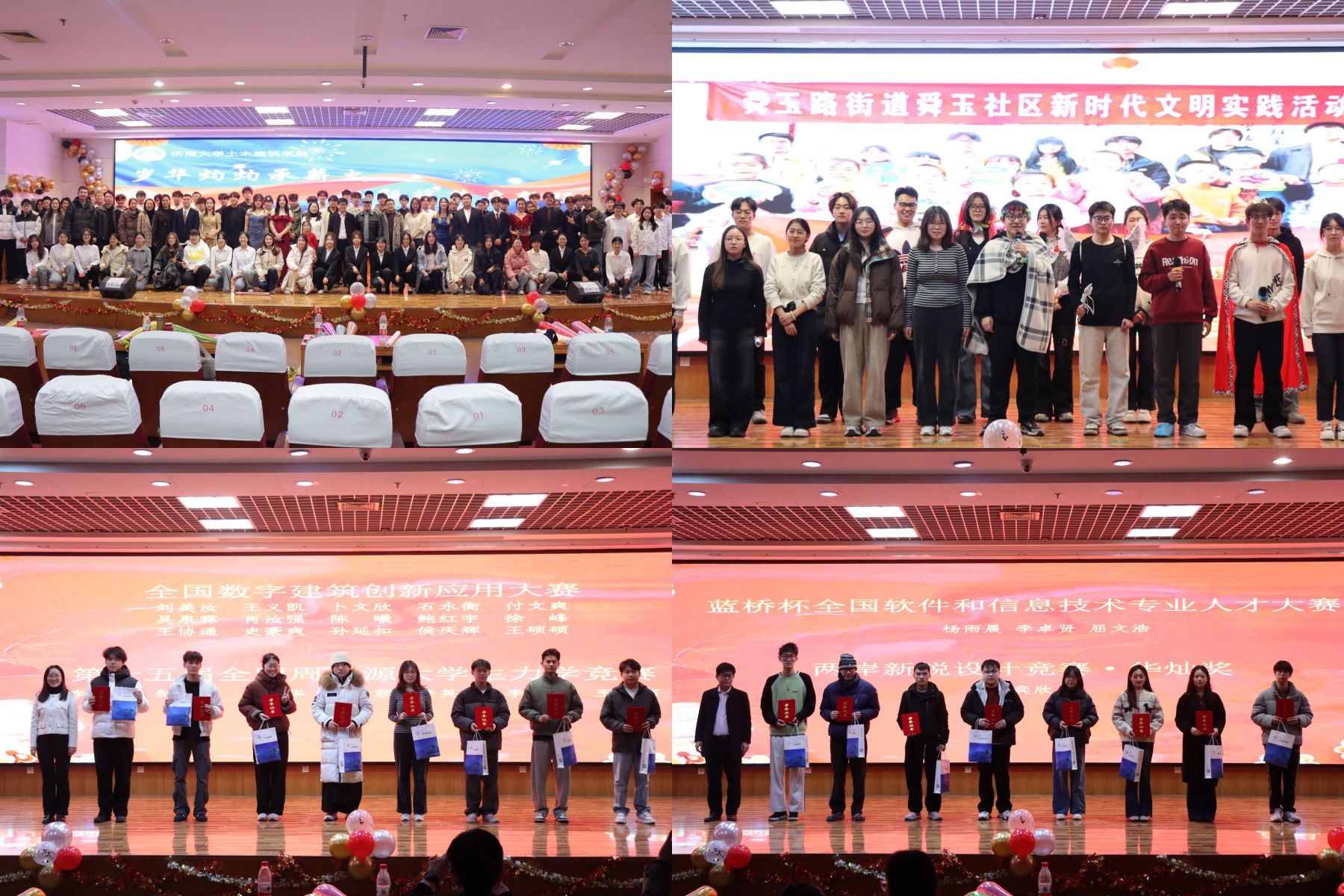 此次晚会的顺利举办,不仅增进了师生情谊,更为学院的文化育人工作筑牢了生动的实践根基。新的一年,我院将继续在科研与教学的征途上不断探索新知、勇往直前;亦愿全体土建学子以蓬勃昂扬之姿迎接挑战、追逐梦想,与学院携手并肩,共同书写更加璀璨辉煌的崭新篇章。