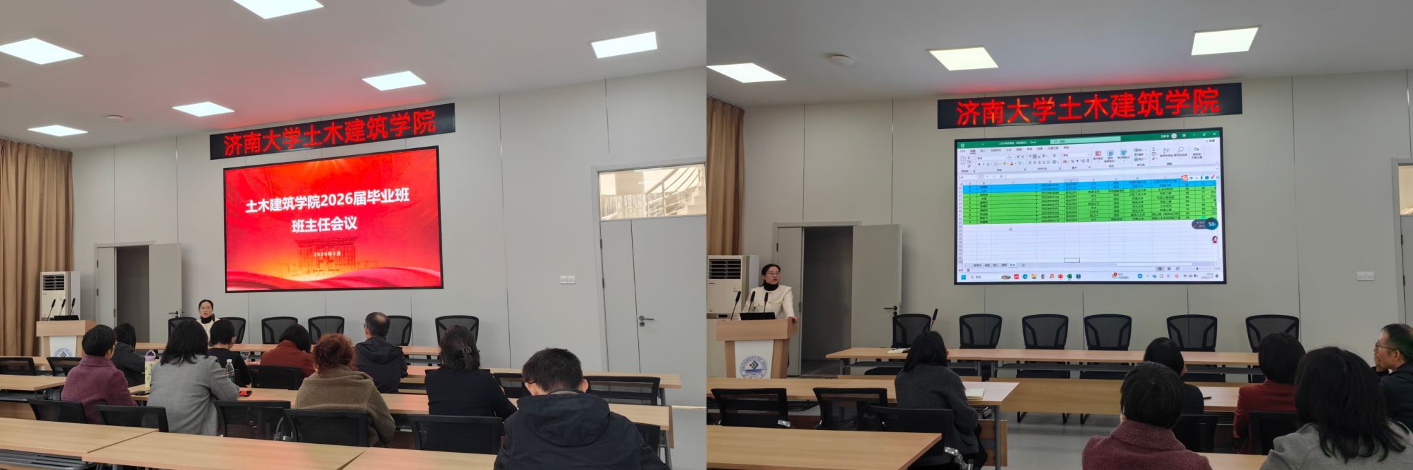 会上,李健慧通报了2026届毕业生的整体情况,详细梳理了学生考研初试成绩、调剂意愿以及就业现状,深入分析了当前土木建筑行业就业形势与考研调剂政策导向,明确了现阶段工作中的重点难点问题。毕业班辅导员孙燕就毕业班日常管理、毕业资格自查、学生心理状态排查等工作补充说明,明确了后续工作时间节点和具体要求。