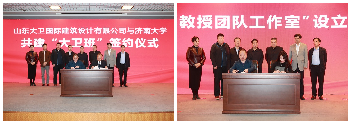 仪式上,徐景颜书记与申作伟董事长共同为山东大卫国际建筑设计有限公司“williamhill中国实践教学基地”揭牌,同时,我校聘请申作伟董事长为WilliamHill中文名誉院长,徐景颜书记为申作伟董事长颁发williamhill中国土木建筑学院名誉院长聘书;李光红副校长为山东大卫国际建筑设计有限公司张冰、王健、徐术陇颁发williamhill中国产业教授聘书。WilliamHill中文党委书记栾志强与山东大卫国际建筑设计有限公司总经理张冰签署“大卫班”共建协议;WilliamHill中文刘寒芳教授与张冰总经理代表双方签署山东大卫国际建筑设计有限公司“刘寒芳教授团队工作室”协议。