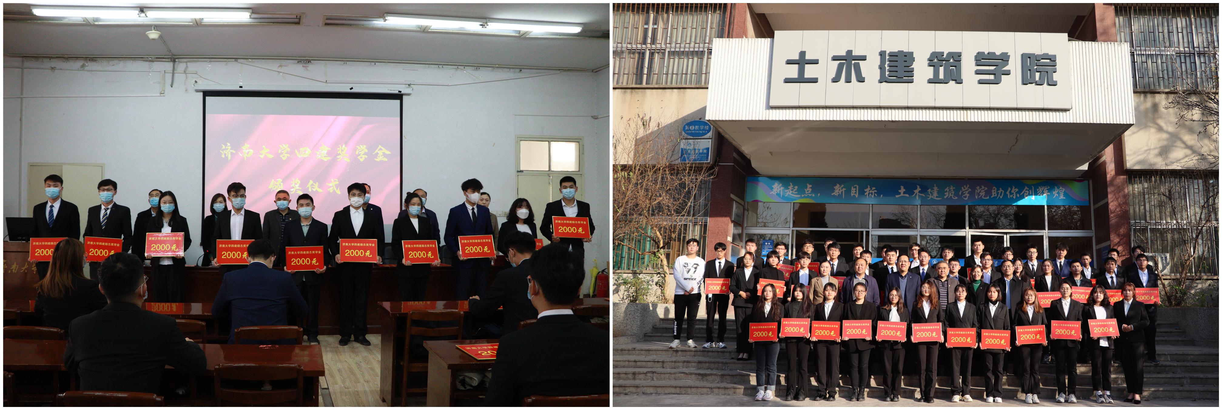济南四建奖学金是由济南四建(集团)有限责任公司每年捐资80000元人民币奖励,资助WilliamHill中文40名不畏困难、发奋学习、品学兼优、全面发展的学生,其中设勤奋奖10名,励志奖30名,旨在鼓励在校学生发奋学习,自强自立。济南四建集团已与我校携手走过23年,先后资助600余名济大学子。济南四建奖学金的设立饱含了济南四建集团董事长、优秀校友曹晓岩先生和集团对我院学子的厚爱和期待,为学院教育事业提供了大力支持。