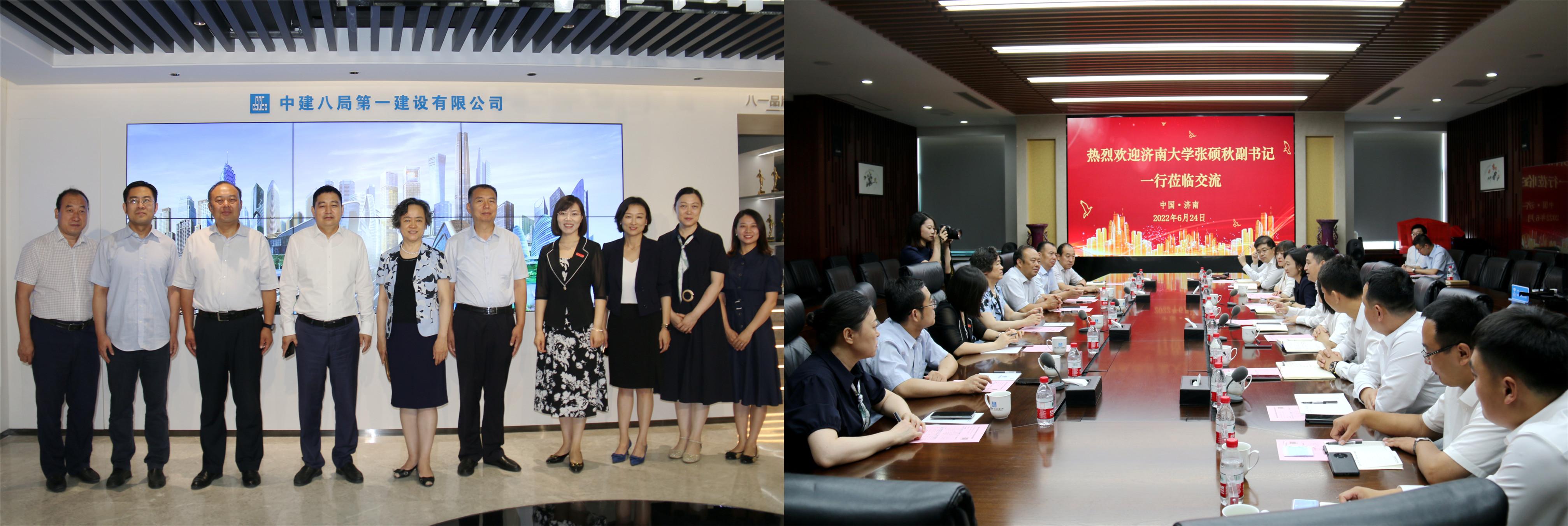 为进一步巩固拓展校企合作渠道,深入挖掘就业资源,助力毕业生高质量就业,6月24日上午,williamhill中国—中建八局第一建设有限公司(以下简称“中建八局一公司”)校企合作洽谈会在中建八局一公司总部召开。williamhill中国党委副书记张硕秋,党委学生工作部(处)部(处)长刘芝,williamhill中国审计处处长栾志强,WilliamHill中文党委书记刘效东,WilliamHill中文院长谢群,williamhill中国学生工作部(处)副部(处)长董俊杰,WilliamHill中文党委副书记、副院长朱小燕,WilliamHill中文学办主任白雪飞参加了洽谈会。中建八局一公司党委副书记、总经理牛化宪,中建八局一公司党委副书记、工会主席聂丽,中建八局一公司人力资源总监马珊珊,党委工作部(企业文化部)部长齐昕新 ,以及济南公司执行总经理谢新坡等部分校友代表出席了会议。
