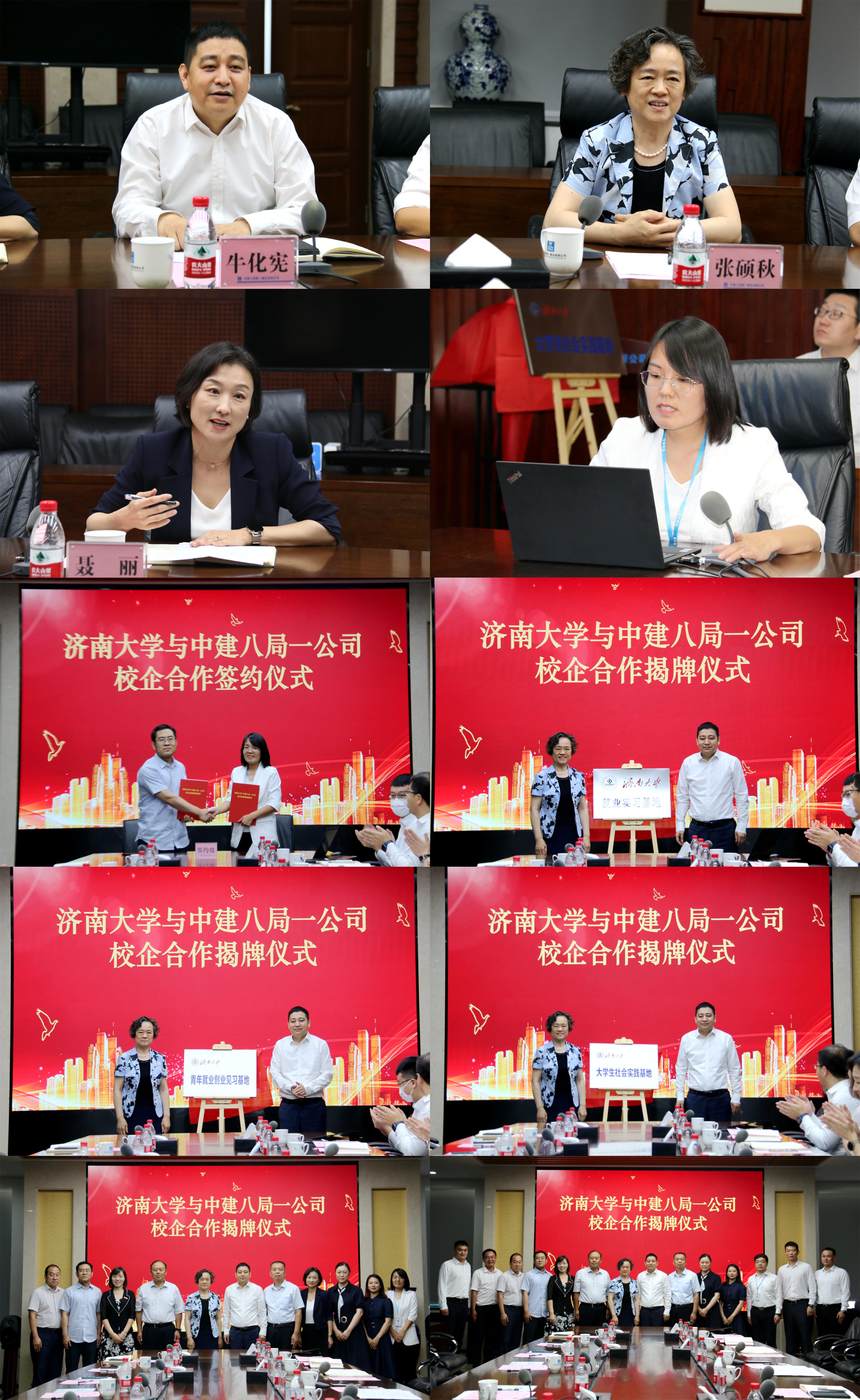 WilliamHill中文院长谢群代表校方与中建八局一公司签订了校企合作协议书,张硕秋与牛化宪总经理共同为williamhill中国毕业生就业实习基地、大学生社会实践基地、青年就业创业见习基地揭牌。