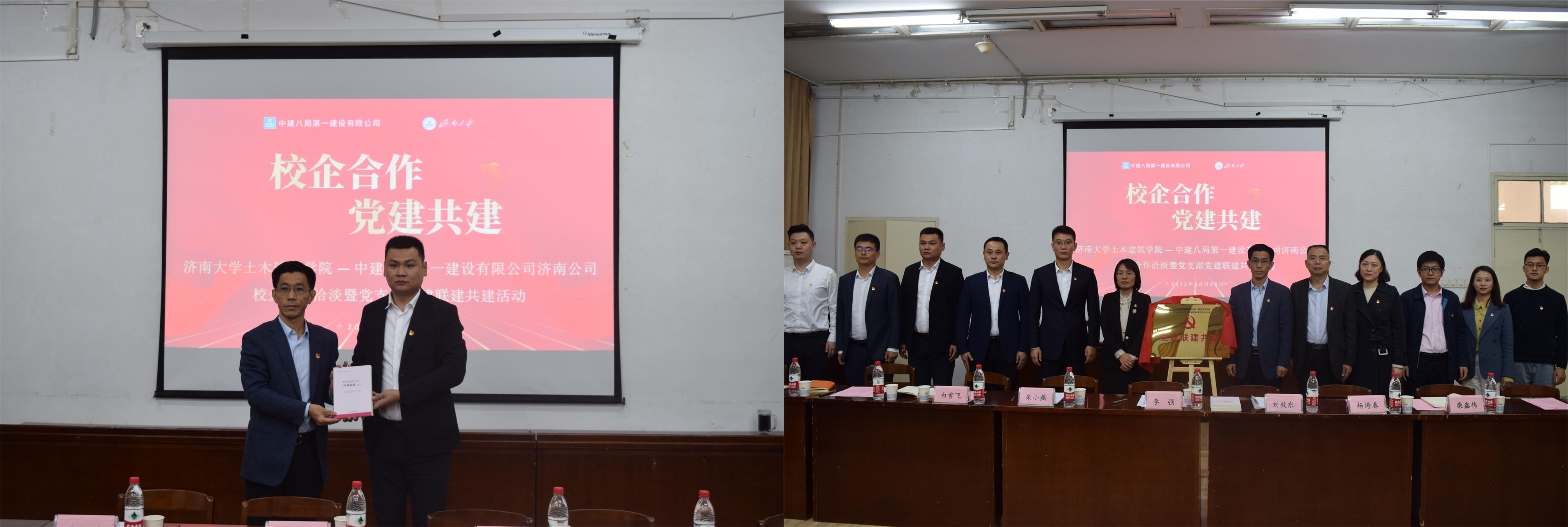 10月26日,我院与中建八局第一建设有限公司济南公司在第八教学楼举行校企合作洽谈会暨党支部党建联建共建活动。学校党委常委、副校长李强出席活动、学院党委书记刘效东、院长谢群、副院长杨涛春以及学院市政系师生联合党支部和研究生党支部党员代表和中建八局一公司人力资源总监马姗姗,中建八局一公司济南公司执行总经理、党委副书记、工会主席、WilliamHill中文 2009 届校友谢新坡,中建八局一公司济南公司副总经理WilliamHill中文 2012 届校友肖劲松,中建八局一公司济南公司人力资源部经理初新阳,中建八局一公司文庄租赁住房项目党支部书记、项目经理辛建鑫,中建八局一公司济南公司党群工作部副部长、综合办公室副主任张藤栊及中建八局一公司文庄租赁住房项目党支部党员共同参加活动。活动由学院党委副书记、副院长朱小燕主持。
