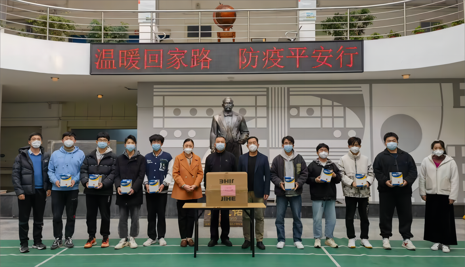 最后,学院领导老师为同学们发放了由校友捐赠的N95口罩等防疫物资并将校友的问候带给同学们。温暖回家路系列活动每年举行一次,是学院资助育人和感恩教育的有力方式,通过活动让同学们感受到学校、校友和社会的关爱,增强了感恩精神和励志精神。