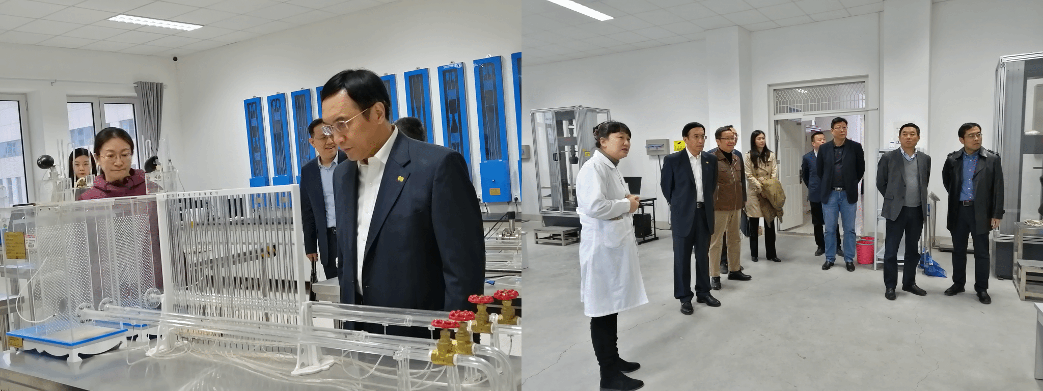 随后曹晓岩一行参观了土木工程综合实验楼和第八教学楼,曹晓岩对学校和学院在办学条件的持续投入和专业学科建设取得的巨大发展表示赞赏,希望能在人才培养方面为母校做出更大的贡献。学院岩土和地下工程科研团队负责人刘俊岩教授介绍了团队情况以及在基坑支护、隧道开挖及监测、地下空间利用等领域的研究成果。双方通过深入研讨与交流,就校企共建产业创新研究院达成了初步意向。