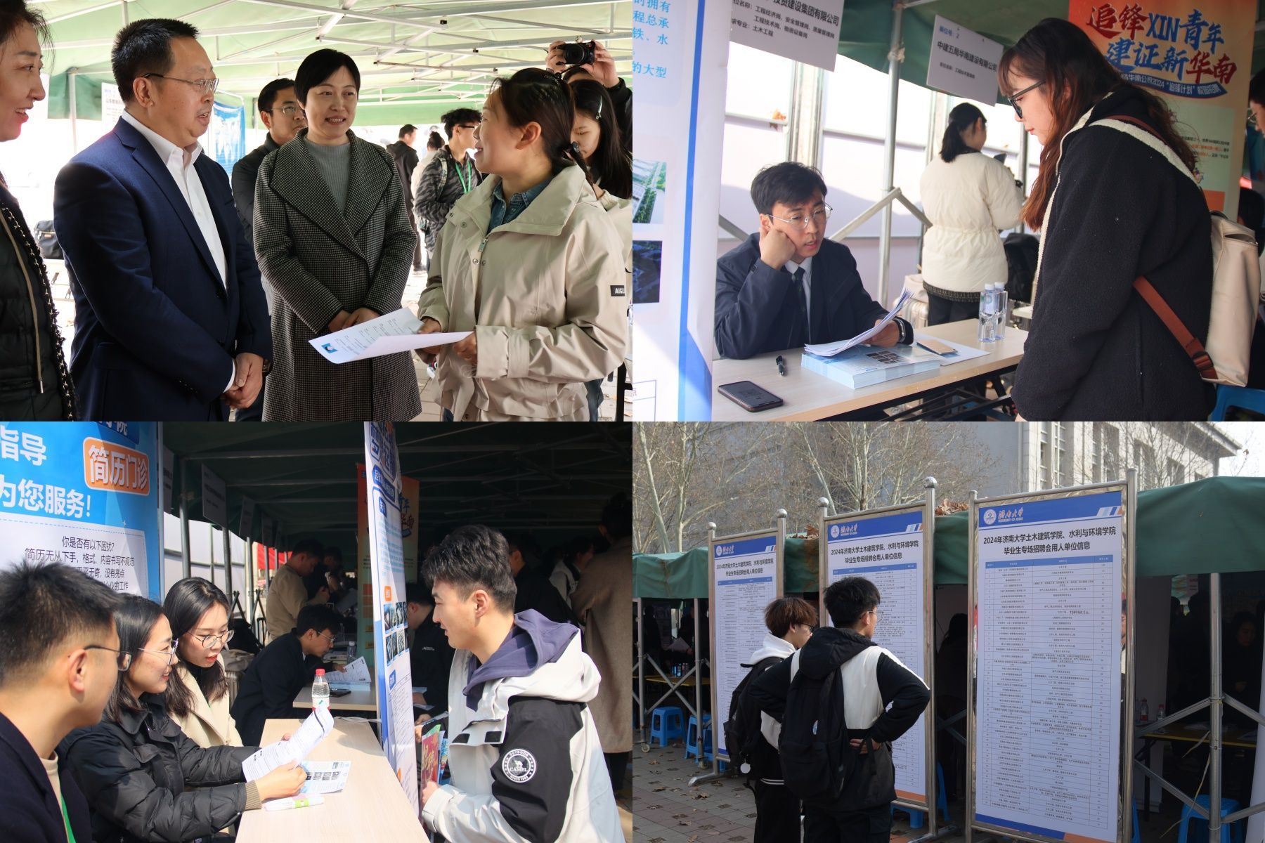 招聘会现场设立了“土建学院简历门诊”“水环学院生涯规划指导”等特色项目,由毕业班辅导员和班主任为毕业生提供一对一的就业咨询服务,帮助他们完善简历,提升求职竞争力;另外设立西部计划、征兵入伍等展位,鼓励学生响应国家号召,到祖国需要的地方去建功立业。