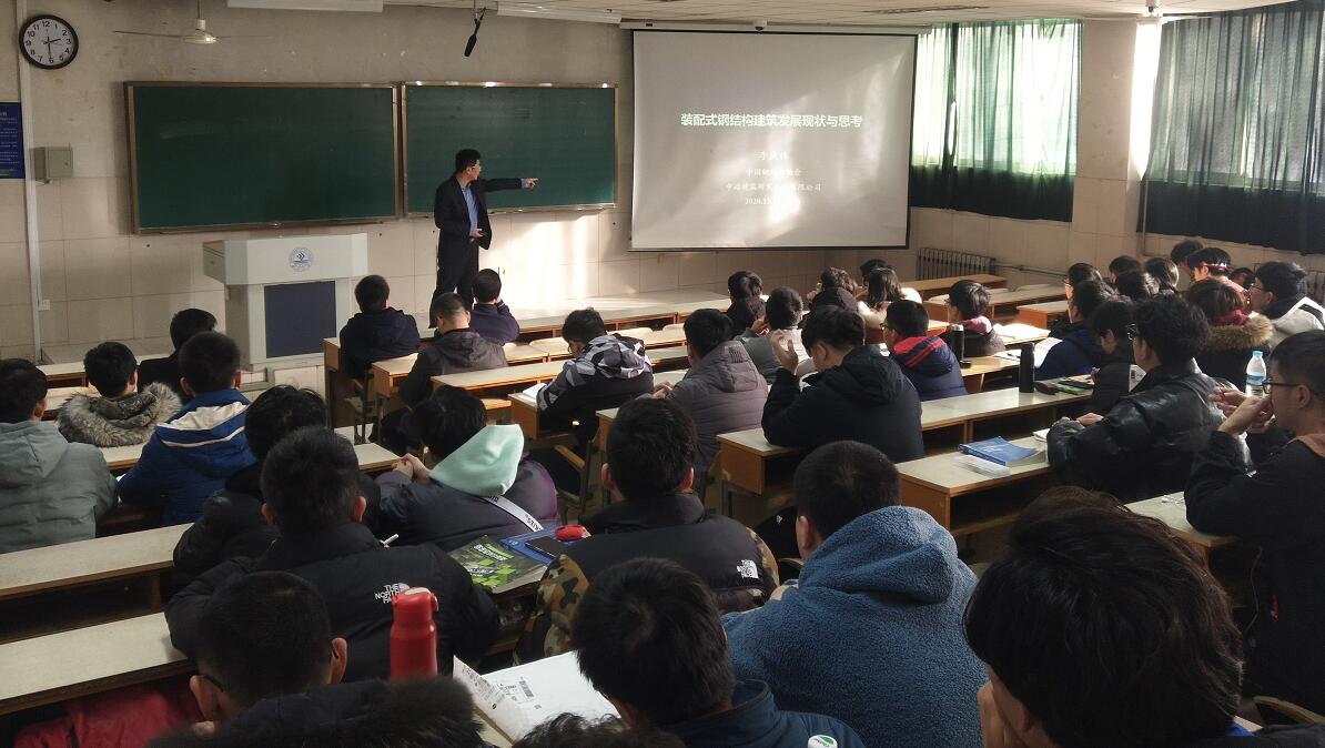 在报告会上,李庆伟秘书长为学院师生作了题为“装配式钢结构建筑发展现状与思考”的报告,从装配式建筑发展概况、我国钢结构行业发展现状、钢结构相关政策、总结与思考四个方面对钢结构行业的发展进行了分析和讲解,指出钢结构行业发展是土木工程领域发展趋势,也是国家发展战略需要,也希望未来能与广大师生加强交流,在钢结构行业领域开展更加广泛的合作。