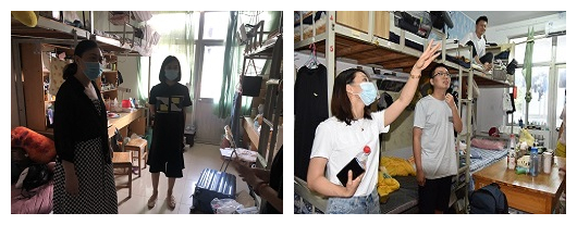 学院领导老师走访了所有返校学生宿舍,与同学们面对面交谈。本次宿舍走访主要针对学生返校后宿舍安全问题和卫生情况进行摸排,了解掌握学生返校后的各项需求,帮助学生尽快适应并有序开展新的学习生活。在走访过程中,学院领导老师在检查和指出宿舍问题的同时,亲切地询问同学们在学习和生活上的遇到的困难,了解学生的切实需求,告诉他们如有任何需要都可以寻求辅导员的帮助,同时鼓励同学们在大学期间明确自己的人生目标,珍惜眼前的发展平台,实现人生价值。此外,院领导老师还为同学们仔细讲述了一些防疫的基础知识,引导学生正确认识疫情,帮助学生科学高效地进行宿舍消杀工作,嘱咐同学们注意保持宿舍卫生环境,常通风,多锻炼,勤洗手,在校期间做好各项疫情防护工作,遵守学校学院各项疫情防控规章制度。