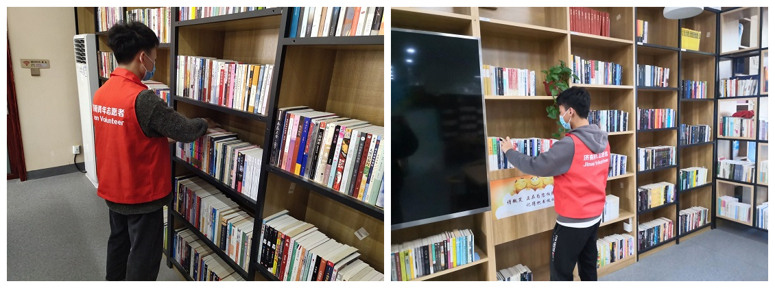 志愿者们提前到达泉城书房,在咨询了解到志愿服务内容过后,志愿者们按照高低顺序整理书架上的书籍,并且将读者归还的书籍按照序号摆放到正确的书架上。志愿者们都很注意自己的言行举止,做到尽量不说话,整理书籍时也轻拿轻放,不打扰读者。本次志愿服务活动不但让本就安静舒适的书房变得更加井然有序,同时也丰富了志愿者的业余生活,为济南市振兴街道的读者提供了良好的读书环境。