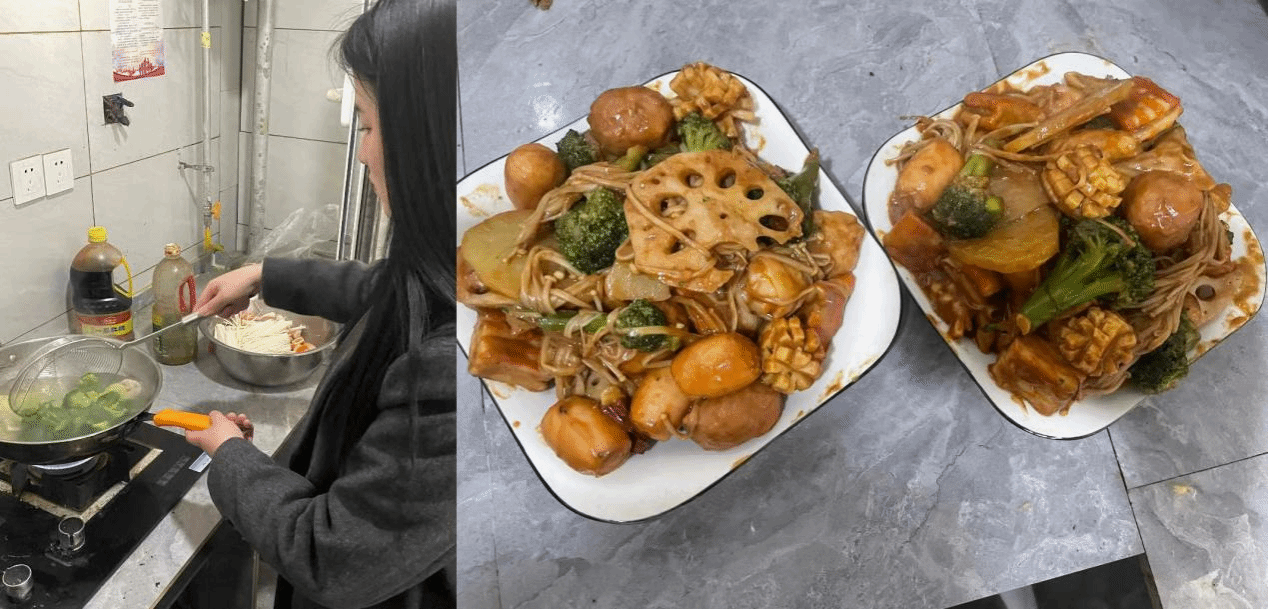 一些同学利用寒假精进厨艺,在除夕夜大显身手,为家人献上一顿美味的年夜饭,在新年盛宴中品味幸福。