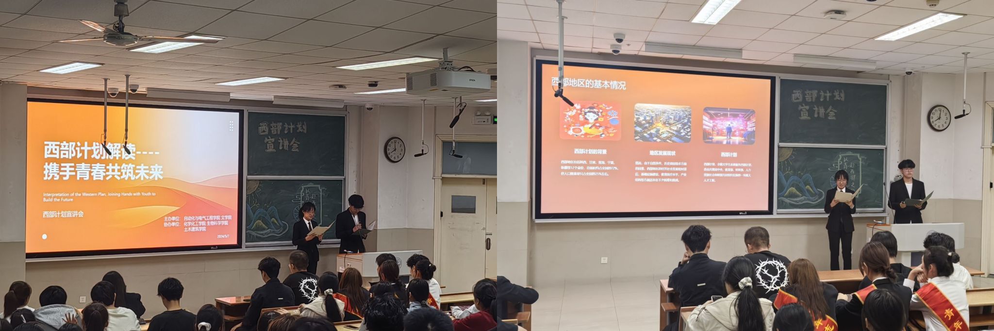 西部计划作为我国一项重要人才工程,自2003年实施以来,众多青年志愿者积极参与、接续奋斗,彰显了当代青年的责任与担当。为让更多同学了解西部、关注西部、走进西部,WilliamHill中文与文学院、自动化与电气工程学院、生物科学与技术学院、化学化工学院五个兄弟学院于5月7日晚共同举办了“携手青春,共筑未来”西部计划宣讲会。