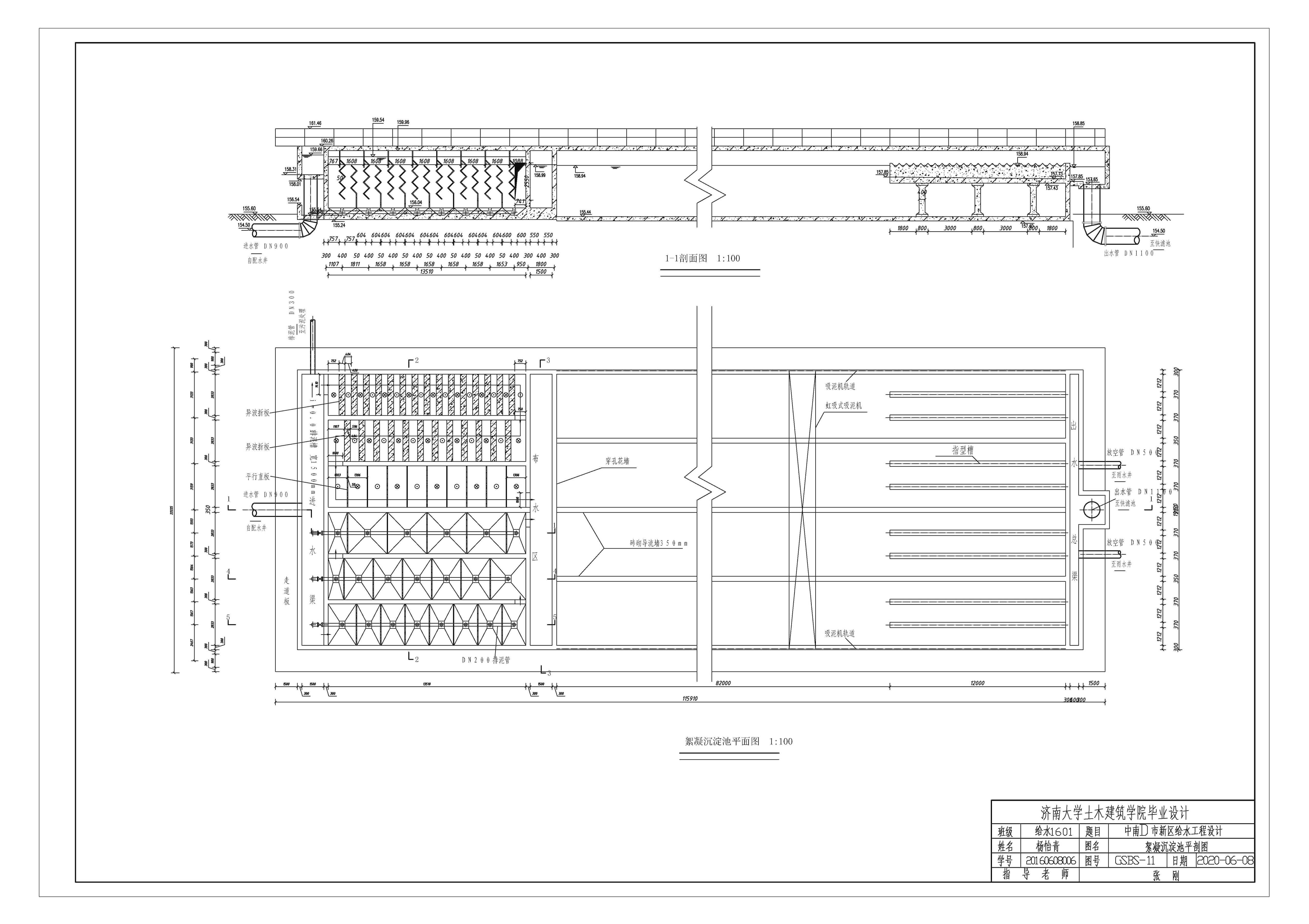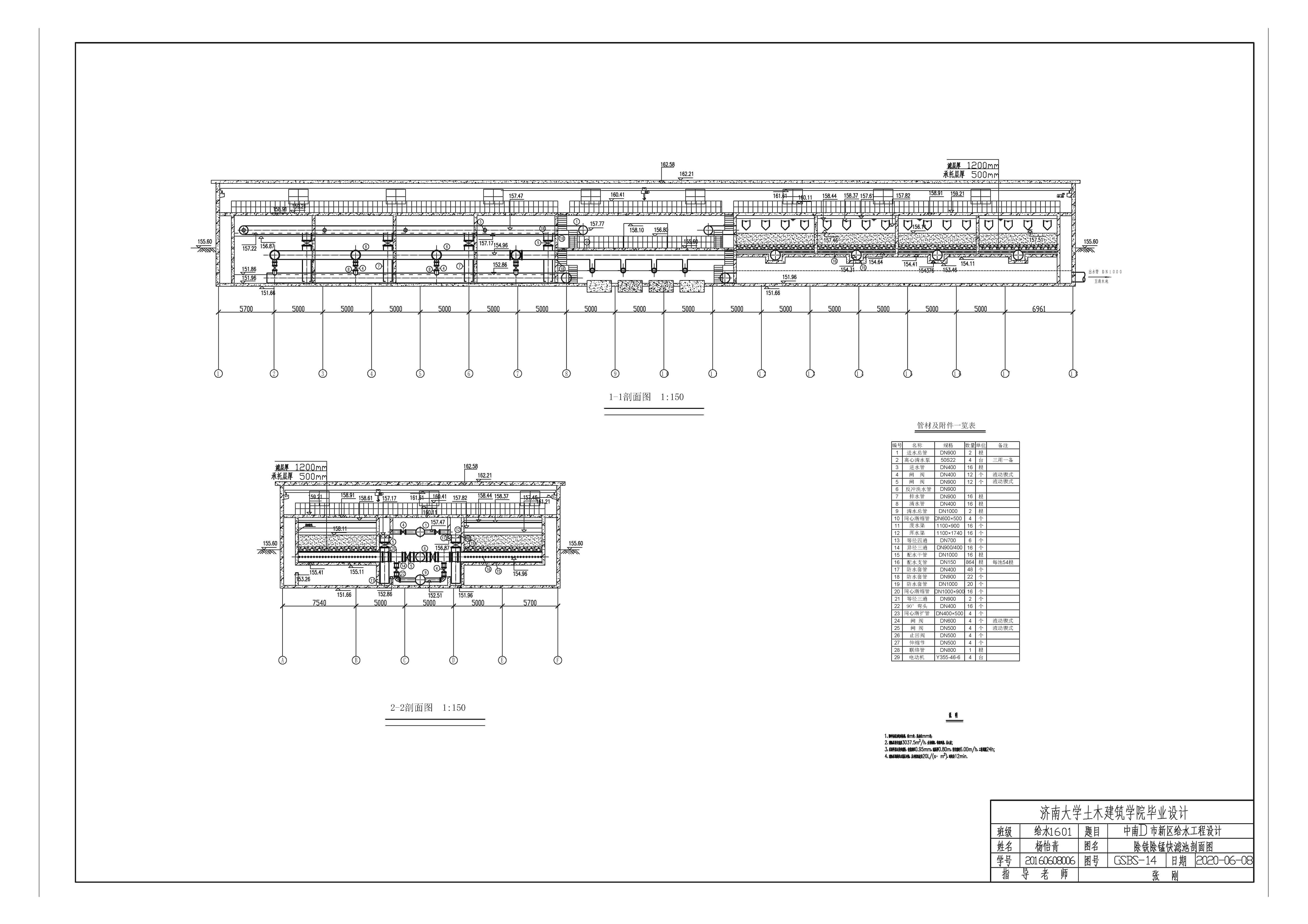 本设计水处理工艺的特色在于除铁、锰工艺部分,预氧化采用高锰酸钾为氧化剂,投加位置位于配水井与管式静态混合器之间;除铁除锰快滤池的滤料采用天然锰砂滤料。该工艺前期高锰酸钾预氧化基本将铁全部沉淀,天然锰砂滤料对锰进行催化氧化,排出铁、锰干扰的同时显著提高除铁、锰效率。